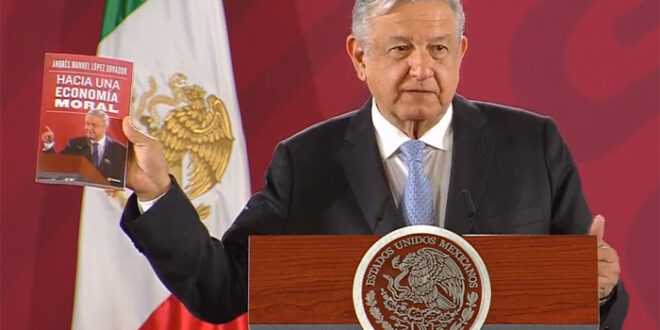 Redacción/ La Voz de Michoacán Ciudad de México. "Hacia una economía moral", es el nuevo libro del presidente Andrés Manuel López Obrador, que fue presentado en la rueda de prensa de esta mañana. El mandatario dijo que este trabajo contiene "el fundamento de la política que se aplica en el periodo pos-neoliberal". "Ya ven que siempre decían que no había de otra, aquí está el modelo alternativo". El libro se presentará oficialmente a un año de gobierno de la Cuarta Transformación, el próximo 1 de diciembre. El libro editado por Planeta, fue mostrado esta mañana y el presidente anunció que de momento estará a la venta en una versión electrónica, con un costo de 140 pesos. https://www.youtube.com/watch?v=O_UtOfP-o5s El Presidente de México dijo que aún no sabe que hará con las regalías del libro.