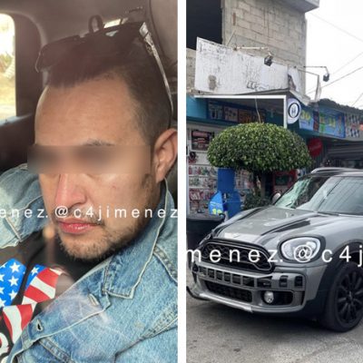 El conductor se dio a la fuga, pero en la escena del percance quedó tirada la defensa con la placa del automóvil; posteriormente policías municipales lo ubicaron, detuvieron y lo llevaron al Ministerio Público.