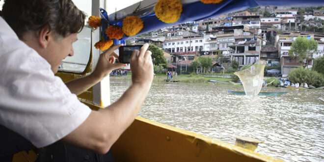 Redacción / La Voz de Michoacán Pátzcuaro, Michoacán. Con la Isla de Janitzio en el horizonte y a punto de abordar la embarcación para recorrer el lago de Pátzcuaro, Christopher Landau mostró su beneplácito por los atractivos turísticos y tradiciones que ha encontrado en Michoacán, así como por la calidez de su gente. “No había un mejor lugar para celebrar Día de Muertos”, expresó el Embajador de Estados Unidos ante habitantes que se acercaron a saludarlo en el muelle de esta localidad. Foto: Cortesía. Enseguida abordó la “Iris Kutzandan”, nombre de la embarcación designada para zarpar en las aguas del emblemático lago y rodear sus islas, acompañado del gobernador Silvano Aureoles Conejo y la secretaria de Turismo en el Estado, Claudia Chávez López. Foto: Cortesía. Junto con su hija Julia, y Eva, amiga de ella -quienes lucieron diademas florales hechas por habitantes de la zona lacustre-, se ubicaron por momentos en la parte frontal o lateral del barco para dominar el paisaje. En el horizonte estaba la Isla de Janitzio, con la estatua monumental de José María Morelos emergiendo de lo alto, con sus 47.75 metros de longitud, y un espectáculo de pesca con redes de mariposa de los lugareños. “¡Beautiful!”, expresó fascinado el diplomático, quien en su recorrido de hoy vistió una camisa deshilada, elaborada por artesanos de San Felipe Los Herreros, municipio de Charapan. Foto: Cortesía. Arturo Morales Becerra, el operador de la embarcación, supo hasta más tarde que entre sus pasajeros iba el representante del presidente norteamericano Donald Trump, en México. “Es la primera vez que llevo a personalidades tan importantes. ¡No lo podía creer! Me da gusto que vengan a conocer Pátzcuaro; ésta es su casa y siempre son bienvenidos”, comentó el joven michoacano. Foto: Cortesía. La travesía fue amenizada con sones y música regional que Landau aplaudió en todo momento. El repertorio incluyó “Caminos de Michoacán”, con un deleite de cuerdas previo al recorrido que el Embajador realizará en panteones para conocer en persona la tradición de Noche de Muertos, reconocida en México y el mundo.