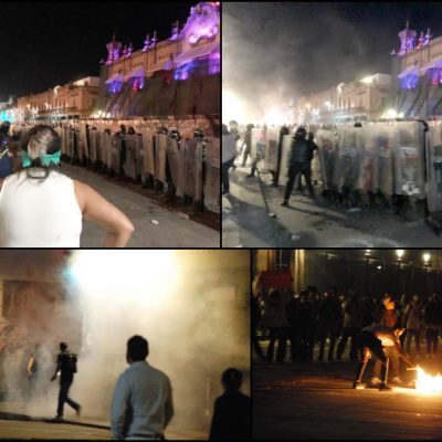Redacción / La Voz de Michoacán Morelia, Michoacán. Para exigir un alto a la violencia, tener condiciones de igualdad, que haya justicia para las víctimas, tener seguridad y muchas deudas más que tiene la sociedad con ellas, mujeres marchan este 8 de marzo, Día Internacional de la Mujer, con una clara consigna: que se escuche su voz y hacer visible la problemática que enfrentan.Las movilizaciones parten de dos puntos: el Obelisco al General Lázaro Cárdenas y la Fuente de Las Tarascas, desde donde las participantes marcharán rumbo al primer cuadro de Morelia: ahí harán un pronunciamiento y recordarán a las víctimas de feminicidio. 16:30 Alrededor de 150 mujeres se encuentran congregadas y refugiadas en la sombra del Obelisco a Lázaro Cárdenas, visten de negro la mayoría con listones morados. Algunas cubiertas de la cabeza mientras otras escriben en cartulinas: “tenemos fuego”, se lee. Un grupo de mujeres se preparará para un ritual con danza. Tambores, incienso y hierbas se observan en la explanada. 17:00 Desde La Fuente de Las Tarascas parte el contingente de mujeres con rumbo al primer cuadro de la ciudad. 17:10 El contingente que partió desde Las Tarascas llegó frente al Templo de Las Monjas, donde grupos denominados provida realizaron una valla humana para proteger el recinto. Las participantes giraron por la calle Fray Juan de San Miguel, para seguir hacia San Francisco. 17:25 Las participantes en la marcha comenzaron a realizar pintas en el Templo de San Francisco, sin embargo, integrantes de grupos provida realizaron una valla humana frente al inmueble religioso. Las manifestantes se sentaron frente al templo y leyeron un posicionamiento en el que defienden su derecho a usar la vía pública para manifestarse y exigir un alto a la violencia. 17:30 En el Obelisco a Lázaro Cárdenas inicia el ritual de danza mexica, donde todas las asistentes acompañan alzando las manos al cielo. 17:36 El contingente que partió del lado oriente de la avenida Madero, retomó su paso por esa validad, luego de haber pasado por la plaza Valladolid, donde leyeron un posicionamiento frente al Templo de San Francisco. 17:58 Observadoras de la Comisión Estatal de Derechos Humanos (CEDH) vigilan la realización de la movilización en el Obelisco. Portan chalecos color beige y playera blanca, como distintivos. 17:57 La manifestación llegó al primer cuadro de la ciudad, donde las participantes derribaron una parte de los muros metálicos que fueron colocados frente a Palacio de Gobierno. Foto: Samuel Herrera Jr., La Voz de Michoacán.Foto: Samuel Herrera Jr., La Voz de Michoacán.Foto: Samuel Herrera Jr., La Voz de Michoacán. 18:19 En el otro extremo de la avenida Madero, parte el contingente desde el Monumento al General Lázaro Cárdenas, para avanzar hacia el centro. 18:20 En el centro de Morelia, elementos de seguridad resguardan Palacio de Gobierno, en la parte donde fue derribada la valla metálica por parte de las manifestantes. Foto: Samuel Herrera Jr., La Voz de Michoacán. 18:27 Algunas manifestantes arrojaron objetos a los policías que encuentran detrás de los muros metálicos colocados en Palacio de Gobierno. 18:36 Desde la Plaza Jardín Morelos, conocida como 'El Caballito', parte la última marcha por el Día Internacional de la Mujer, en dirección al centro de Morelia. 18:45 Al sonido de las porras y consignas de las mujeres, avanza de manera pacífica la marcha que partió del Obelisco rumbo al centro. Foto: Omar Cuiriz, La Voz de Michoacán. 19:00 Dos bombas de gas fueron lanzadas desde el muro metálico frente a Palacio de Gobierno para dispersar a las manifestantes que intentan derribar las vallas que fueron recolocadas, luego de que las mujeres abrieron un hueco. 19:27 Inicia mitin pacifico con lectura política a la altura de Plaza de Armas, mientras mujeres enérgicas patean el muro metálico frente a Palacio de Gobierno, desde donde los elementos lanzan gas. A la altura de Minisso otro grupo de mujeres golpean edificios. 19:20 Mientras algunas manifestantes intentan tirar la protección metálica de Palacio de Gobierno, en el otro extremo se realiza un mitin pacífico por parte de otras asistentes a la marcha. 19:35 Mujeres se refugian en la Plaza Melchor Ocampo, luego de que fueron dispersadas por los uniformados que se encuentran detrás del muro metálico en Palacio de Gobierno, desde donde arrojan gases. Foto: Omar Cuiriz, La Voz de Michoacán. 19:50 Las manifestantes se replegaron, luego de ser dispersadas con gases, pero continúan con su protesta en la avenida Madero, a unos pasos del Congreso local. 19:59 Hombres se unen a los grupos que intentan derribar las vallas metálicas que protegen Palacio de Gobierno. 20:04 Los grupos de manifestantes, que ya incluyen hombres, intentan prender fuego a las vallas de contención, pero los policías que se encuentran detrás de ellas apagan las llamas con gas. Video: Omar Cuiriz “Fuera hombre, fuera hombres”, gritan las manifestantes, luego de que algunos hombres se acercaron para tratar de prenderle fuego al muro metálico. Foto: Samuel Herrera Jr., La Voz de Michoacán.Foto: Samuel Herrera Jr., La Voz de Michoacán. 20:39 Más elementos de seguridad llegan al centro de Morelia para tomar control de la seguridad en el primer cuadro, así como replegar a los manifestantes que continuaban con sus acciones de protesta. 20:44 Los integrantes de la Unidad de Restablecimiento del Orden Público (UROP) realizaron un cerco de seguridad en la avenida Madero para desalojar a los manifestantes, que durante horas intentaron derribar e incendiar las vallas metálicas en Palacio de Gobierno. Video: Omar Cuiriz 20:50 Se reportan dos heridos tras la jornada de movilizaciones en el Centro de Morelia por el Día de la Mujer, un policía y un comunicador que cubre las acciones. Foto: Omar Cuiriz 20:59 Policías detienen a 7 mujeres mujeres, mientras policías mantienen un cerco de seguridad en la avenida Madero para imped