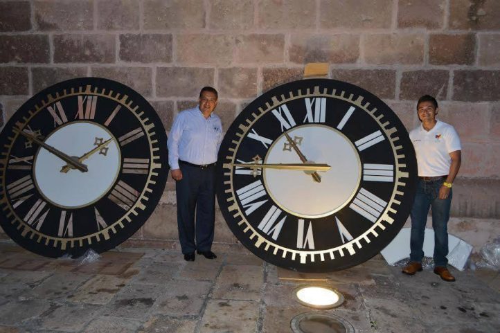 Redacción / La Voz de Michoacán Morelia, Michoacán. Hace seis años que se instaló y se puso en marcha el reloj catedralicio de la torre oriente de la Catedral Metropolitana de Morelia. Con la venia de su Eminencia, entonces Arzobispo de Morelia, Don Alberto Cardenal Suárez Inda, el 15 de octubre de 2014 se concluyeron los trabajos que llevaron varios meses de gestión, contratación , fabricación, instalación y puesta en marcha de las cuatro caratulas del reloj catedralicio en la torre oriente de la catedral de Morelia. Se volvió una costumbre ver los soles huecos de la torre oriente de la Catedral. Así se vio por generaciones y al llegar al ayuntamiento de Morelia, ya como presidente, y que siempre tuve la curiosidad de la falta del reloj, decidí comentarlo con el señor Arzobispo y con gran entusiasmo de inmediato nos dio la autorización para hacer los trámites ante el INAH y buscar la mejor opción de relojes en México” señaló Wilfrido Lazaro Medina. El reloj se contrató con una empresa mexicana del municipio de Zacatlán de las Manzanas, Puebla, y tiene un mecanismo central que atiende las cuatro caratulas del reloj. Según la información, que en la inauguración dio el ayuntamiento de Morelia, el costo total rondó los doscientos mil pesos y fue instalado con la asesoría de la empresa fabricante y personal y maquinaria municipal. Es una alegría observar la catedral con su reloj catedralicio completo y más si sabemos que es esta generación de morelianos la que lo adquirió desde hace seis años con el recurso del gobierno municipal.