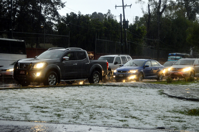 Christian Hernández/ La Voz de Michoacán Morelia, Michoacán. La fuerte granizada que se registra esta tarde-noche al oriente de la capital ocasionó diversas afectaciones, tras lo cual se pusieron en acción protocolos de atención. Como parte de las afectaciones más graves un plafón se cayó en la Plaza Las Américas. La parte del techo que se vio afectada, estaba sobre los negocios: Maskota, Sears y el Centro de Atención a Clientes Telcel. Trabajadores de la plaza, así como elementos de las corporaciones de Protección Civil y Seguridad arribaron al lugar para dar atención al hecho. Al momento no se reportan personas lesionadas, no obstante, tras lo ocurrido inició la evacuación del lugar. También en Altozano, la tromba "hizo de las suyas", afortunadamente no se reportan heridos. Las lluvias comenzaron alrededor de las 19:00 horas. En la zona sur y oriente de la capital fue donde más fuerte cayó la lluvia y granizada. No se registran accidentes, pero el tráfico es lento en vialidades de esta zona de Morelia, como lo es el trayecto a la Expo Fiesta Michoacán 2018. Ante los rumores de que se cancelarán actividades en la Expo Fiesta 2018, el área de comunicación social informó que sigue en pie el concierto del Tri.