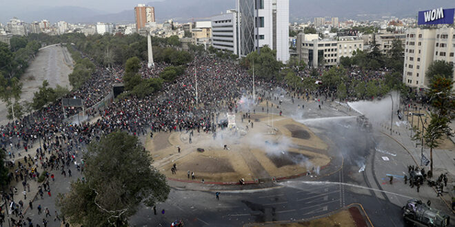 AP / La Voz de Michoacán Santiago, Chile. Miles de personas se congregaron el lunes en una céntrica plaza de la capital chilena, en el decimoctavo día de una protesta social que no cesa y exige respuestas inmediatas a sus necesidades en un país muy desigual. Centenares saltaban y bailaban cuando al atardecer un fuerte temblor remeció edificios de la zona central de Chile a las 18.52 horas local, 21.52 gmt, minutos antes de que una fuerte represión policial dispersó a los manifestantes con gases lacrimógenos y chorros de agua. Policía lanza gas a manifestantes contra el gobierno durante protestas en Santiago de Chile el lunes 4 de noviembre de 2019. (AP Foto/Esteban Felix) La policía impidió que los manifestantes se agruparan por la gran cantidad de gases lacrimógenos que hacían muy difícil respirar, aunque decenas de encapuchados los atacaban con piedras. Un comunicado policial informó que dos agentes femeninas del grupo antimotines fueron heridas con bombas incendiarias. Ambas “están fuera de riesgo vital”, dijo un breve comunicado que agregó que las dos resultaron con quemaduras en el rostro. La manifestación, tras un fin de semana de cuatro días, fue muy inferior a otras anteriores. Oficiales de policía son asistidos después de haber sido afectados por bombas de gasolina lanzadas por manifestantes durante protestas contra el gobierno en Santiago de Chile el lunes 4 de noviembre de 2019. (AP Foto/Esteban Felix) Esta es la primera vez que el multitudinario movimiento, que carece de voceros y conducción política conocida, es convocado por un conglomerado de decenas de organizaciones de profesores, estudiantes, jubilados, profesores, artistas y empleados públicos, congregados en la opositora Mesa de Unidad Nacional. Bárbara Figueroa, la líder comunista de la Central Única de Trabajadores, sostuvo que “en la medida que no haya presión… hay una agenda del gobierno que va a seguir avanzando” al igual que proyectos legislativos, porque “tenemos una oposición que en esto no ha tenido firmeza”. Decenas de dirigentes gremiales agrupados en la opositora Mesa de Unidad Nacional se congregaron frente a la vieja sede del Congreso en la capital chilena para exigir cambios profundos al gobierno del presidente Sebastián Piñera, que hace casi tres semanas enfrenta una amplia gama de demandas, desde alzas de pensiones y salarios hasta una nueva Constitución. Luis Morales, jubilado de 69 años, dijo que “no tenía idea de quién llamó a marchar hoy. Yo sólo vengo a dónde hay protestas". Es prácticamente imposible dimensionar la respuesta de la convocatoria de la Mesa porque se inserta en las manifestaciones que casi a diario remecen a la capital chilena y al resto del país. Un manifestante se prepara para lanzar una piedra a la policía durante las protestas en Santiago de Chile el lunes 4 de noviembre de 2019. (AP Foto/Esteban Felix) Figueroa llamó recientemente a un paro general de dos días pero la respuesta a la convocatoria no pudo medirse porque se produjo en medio de las gigantescas protestas que, excepto los últimos dos días de feriado y el fin de semana, se realizan en una céntrica plaza de Santiago, que el 25 de octubre reunió a más de 1,2 millón de personas. El ministro de Hacienda, Ignacio Briones, pronosticó una caída en el crecimiento de Chile para 2019 del 2.6% estimado a entre un 2.2 y 2.0%. La actividad económica fue impactada por las incesantes protestas multitudinarias, por el cierre durante dos semanas de gran parte del comercio y por el término anticipado de las jornadas de trabajo en amplias zonas de la ciudad por la falta de transporte público y un subterráneo que funciona al 60% de su capacidad. Al enterarse, Verónica González, una contadora de 59 años, dijo: “yo creo que no es que vaya a crecer menos… es cierto que hay personas que están perdiendo dinero, pero lo van a recuperar después… Esta lucha se tiene que hacer igual”. Hace casi tres semanas, un alza en el subterráneo fue seguida de un fin de semana de violentos saqueos, incendios y disturbios generalizados que desembocaron en las protestas que el país sudamericano vive casi a diario. Piñera respondió con una agenda social que incluye proyectos de ley con leves mejoras en las pensiones básicas y en el salario mínimo -que son tramitadas en el Congreso- además de rebajas en los sueldos y asignaciones de diputados y senadores, que oscilan entre los 27.000 y 44.000 dólares mensuales, y una suba en el impuesto a los que ganan más de 11.000 dólares. Los chilenos tienen un sueldo promedio que oscila entre los 500 y 700 dólares y un salario mínimo de 400 dólares que Piñera ofreció subir 65 dólares. Según Leonardo Moreno, de la Fundación para la Superación de la Pobreza, en Chile el 10% de la población gana un 7,8% más que el 90% restante y el 65% de los 18 millones de chilenos gasta más que sus ingresos y está sobre endeudado. Hombres disfrazados de payasos, uno de ellos como Joker y con una bandera indígena mapuche, son rociados con agua por la policía durante protestas gubernamentales en Santiago de Chile el lunes 4 de noviembre de 2019. (AP Foto/Esteban Felix) El analista Marcelo Mella, de la Universidad de Santiago de Chile, dijo a la AP que la tensión social en Chile, con su régimen presidencial, no derivaría en una salida de Piñera, “salvo por el mecanismo (constitucional) de acusación política”, que promueven un par de partidos izquierdistas. Aunque se sumaran otros tres partidos opositores no lograrían los votos necesarios al no contar con el respaldo del centrista Partido Demócrata Cristiano, que a menudo negocia con el gobierno. “Sería un fracaso que agregaría otro problema al que ya tenemos en Chile, una falta de conducción política de la protesta social”.Marcelo Mella, analista. El politólogo Alberto Mayol dijo AP que “todos los esfuerzos (de Piñera) se centran en una sola variable, la agenda so