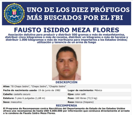 Agencias / La Voz de Michoacán Washington, Estados Unidos. El gobierno de Estados Unidos ha pedido a la ciudadanía en general que ayude a localizar a Fausto Isidro Meza Flores, alias El Chapo Isidro, luego de que el Buró Federal de Investigaciones (FBI, por sus siglas en inglés) lo añadiera a la lista de los 10 fugitivos más buscados. Cabe mencionar que el mexicano es buscado por tráfico de drogas y delitos violentos, además de ser el presunto líder de una poderosa organización criminal que opera principalmente en Sinaloa. En un videomensaje, el director interino del Buró Federal de Investigaciones (FBI), Brian Driscoll, hizo un llamado a que cualquier persona que pudiera tener información del hombre contacte a las autoridades y, en el mejor de los casos, recibir hasta 5 millones de dólares por la información. “Alentamos a cualquiera con información sobre su paradero a que contacte al FBI y nos ayude a añadir a Meza Flores a la lista de peligrosos fugitivos que hemos llevado juntos ante la justicia”, detalló el funcionario de inteligencia. ¿De qué se le acusa? El Chapo Isidro cuenta con una acusación federal por crimen organizado y tráfico de drogas en Washington, DC. Como líder de su propia organización, denominada el Cártel Meza Flores, se le acusa de posesión, distribución e importación de grandes cantidades de cocaína, fentanilo, heroína, metanfetamina y mariguana, las cuales llegan hasta el territorio estadunidense. “Conocido como El Chapo Isidro, ha pasado los últimos 20 años inundando a los Estados Unidos con fentanilo, cocaína, heroína y otras drogas mortales. Primero como un traficante de drogas independiente y después como líder de (su propio) cártel. Además del flagelo de las drogas ilegales que Meza Flores y su organización han desatado dentro de EUA desde nuestra frontera sur, también están acusados de crímenes atroces que van desde el secuestro y la extorsión a la tortura y el asesinato”, detalló Driscoll en su mensaje. https://youtu.be/JPwLLc2yOZE Según información del gobierno estadunidense, Meza Flores heredó los contactos, rutas, recursos y el poder de Arturo Beltrán Leyva y de su cártel, luego de que esa organización criminal fuera eliminada. “Si tiene información sobre Meza-Flores, llame al 1-800-CALL-FBI (1-800-225-5324), a su oficina local del FBI o a la Embajada o Consulado Estadounidense más cercanos o envíe una denuncia a través de tips.fbi.gov. También puede comunicarse con el FBI a través de WhatsApp al 571-379-3951”, añadió el FBI sobre su oferta por información de El Chapo Isidro.