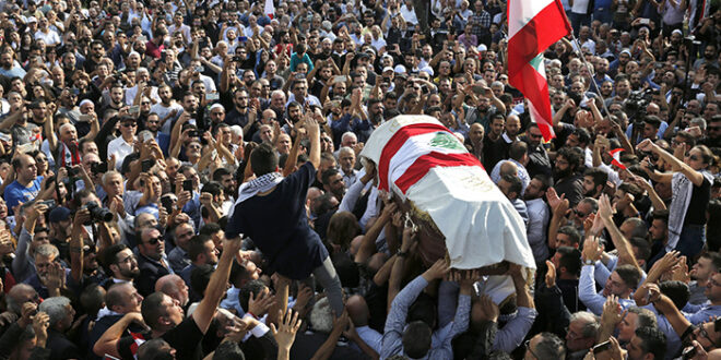 Foto: AP. Dolientes y familiares de Alaa Abu Fakher, el manifestante que murió al ser baleado por un soldado libanés.