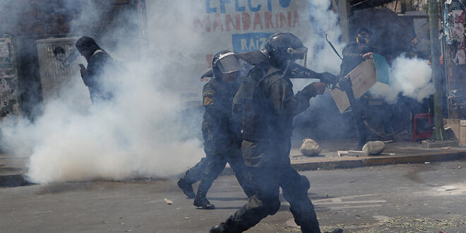 Foto: AP. La policía dispara gases lacrimógenos para dispersar a los manifestantes antigubernamentales y progubernamentales después de la reelección del presidente Evo Morales en La Paz.