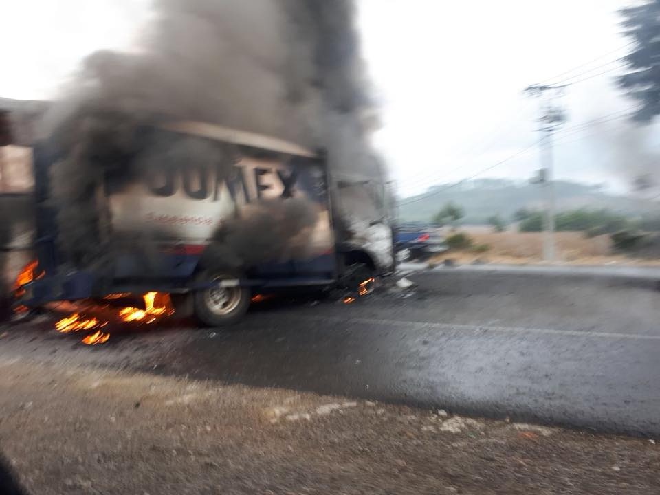 Redacción/ La Voz de Michoacán Uruapan, Michoacán. La Coordinadora Nacional de Trabajadores del Estado (CNTE) radicalizó las acciones este día y se prevé continúen con las mismas el día de mañana. Al menos dos vehículos, entre ellos un autobús de pasajeros. Fuentes gubernamentales refirieron que uno de los automotores fue quemado en la carretera Aranza-Paracho. A ese sitio acudieron los elementos de la Asociación de Bomberos Voluntarios del Estado de Michoacán A. C., mismos que atendieron la emergencia. La unidad era una propiedad de la compañía de jugos Jumex. Mientras que en la carretera Uruapan-Los Reyes en la desviación hacia la localidad de Corupo, los “centistas” le prendieron fuego a el camión del servicio público. No hubo personas lastimadas y unos bomberos de la región se encargaron de sofocar la lumbre. Además de desquiciar el tráfico en diversos puntos de Morelia, también quemaron vehículos en Uruapan y sus alrededores. La CNTE ha exigido durante los últimos tres meses el pago de bonos y sueldos de profesores emanados de las generaciones 2015, 2016 y 2017, de las diferentes escuelas normales de la entidad que les adeuda la administración estatal. A este movimiento del magisterio disidente se han sumado organizaciones relacionadas al sector educativo y, ahora, la comunidad indígena de Caltzontzin.