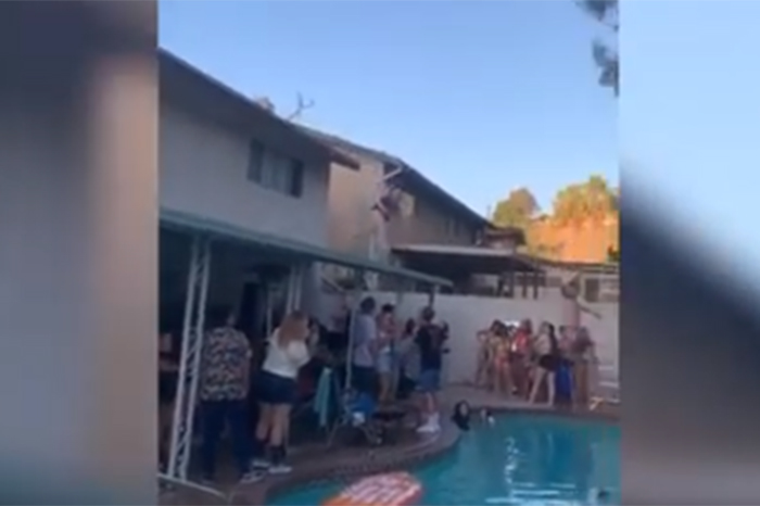 Lo+Viral | Salta a la piscina desde el tejado de una casa pero se golpea contra el techo antes de caer al agua Leer más »