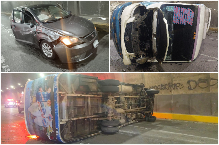 Accidente | Camión de la Ruta Centros Comerciales vuelca tras chocar contra un auto en el Libramiento; hay 4 heridos Leer más »