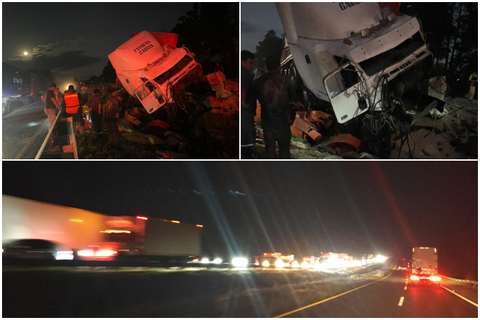 Accidente | Tráiler se sale de la carretera en la Autopista de Occidente y ocasiona colapso vial Leer más »