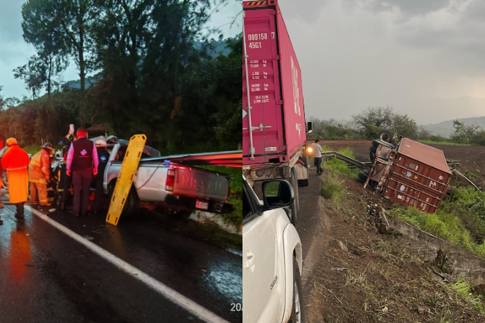 Accidentes | Dos accidentes en la Morelia - Pátzcuaro; tráiler se sale del camino y una patrulla volcada Leer más »