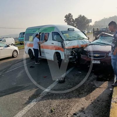 Redacción / La Voz de Michoacán Morelia, Michoacán. Dos personas lesionadas y varios daños materiales, es el saldo del choque entre una combi de la ruta negra y una camioneta que transportaba cerveza, esto sobre la Avenida Madero Poniente, en la ciudad de Morelia, justo en la entrada al fraccionamiento Villas del Pedregal. La emergencia fue atendida por elementos de la Policía Morelia, Bomberos Municipales y Paramedicos, los heridos fueron canalizados a un hospital para su adecuada atención médica. Los uniformados se encargaron del peritaje correspondiente. En breve más detalles… Por el momento se sabe de al menos una persona lesionada. Información en desarrollo.