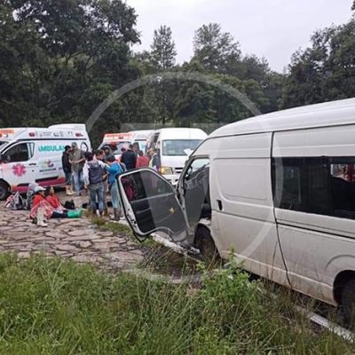 Redacción / La Voz de Michoacán Uruapan, Michoacán. Seis jornaleros, que se dirigían al corte de aguacate, a bordo de una camioneta pick up, resultaron lesionados, tras registrarse un accidente automovilístico, esta mañana, en la carretera Uruapan a Paracho, a la altura de la desviación a Los Reyes. De acuerdo a la información recabada en la labor reporteril, se sabe que a eso de las 05:45 horas, los cortadores de aguacate, viajaban a bordo de una camioneta Chevrolet, doble cabina, pick up, color negro, salieron de Uruapan e iban con dirección hacia San Lorenzo. En la desviación, fueron impactado de frente por una camioneta VW tipo Amarok, color blanco, al parecer, de la empresa comercializadora aguacatera Medina, de Peribán, que se desplazaba con dirección a Uruapan. Tras el impacto, resultaron lesionados, Carlos Antonio, de 22 años; Salvador H., de 25; Rigoberto N., de 19; Ángel Alejandro A., de 29; Eduardo Ch., de 35 y, Ángel Jesús, de 17 años de edad. Todos ellos, fueron auxiliados y canalizados a hospitales, a bordo de las ambulancias R-3003 y R-3022, del Cuerpo de Rescate, delegación Uruapan. Recientemente, dos cortadores luchaban por salvar la vida, dos más; uno por caída de un árbol y otro, de una camioneta en movimiento. Días atrás, en la desviación de Copetiro-Tancítaro-Peribán, otra cuadrilla de cortadores, sufrieron un accidente, donde hubo cuatro jornaleros muertos. Además, el 30 de noviembre, una camioneta que transportaba jornaleros se accidentó en el libramiento de Zamora.