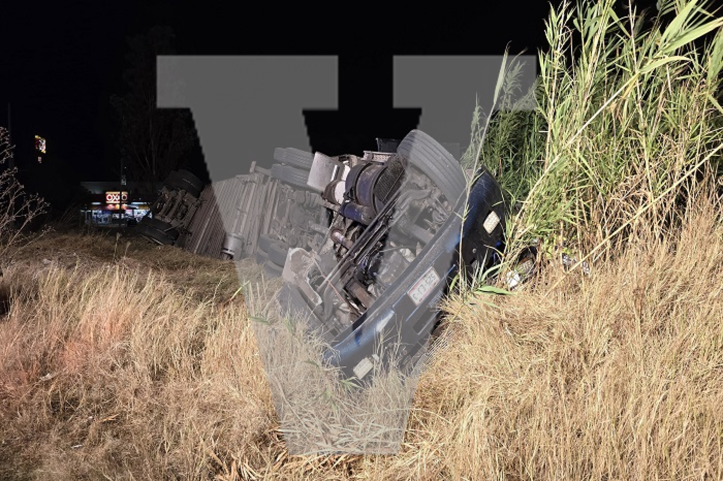 Jacona, Michoacán.- El conductor de un tráiler cargado con varias toneladas de aguacate milagrosamente resultó solo con posible fractura en un pie y una mano, tras quedar prensado luego de que presuntamente se quedó sin frenos y volcó en esta demarcación de Jacona. Respecto al percance se pudo establecer que la madrugada de este domingo, los cuerpos de auxilio fueron alertados sobre un aparatoso accidente en el que un tráiler acabó por fuera del Libramiento Sur, en las inmediaciones del crucero a Los Reyes. Personal de Protección Civil Municipal acudió al lugar y al revisar la unidad, encontraron ileso a un joven que viajaba de copiloto, mientras el chófer estaba prensado dentro de la cabina, por lo que solicitaron el apoyo de Rescate Zamora. Enseguida llego personal capacitado y por varios minutos trabajaron con el equipo hidráulico mejor conocido como "Las Quijadas de la Vida", hasta lograr rescatar a César Gabriel E., M., de 34 años de edad, vecino de la colonia El Sabino de Zamora, quien fue canalizado a un hospital de Zamora. Elementos de Tránsito Municipal se encargaron de los peritajes respectivos, después con el apoyo de unas grúas realizaron las maniobras para remolcar a un corralón el tractocamión siniestrado, uno de color azul marino, con placas 525-EJ-3 del Servicio Público Federal.