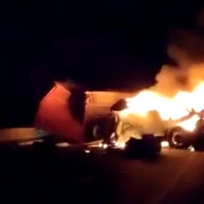 De acuerdo con los reportes preliminares, en este hecho en el que se vieron involucrados dos tráileres que ardieron en llamas, fallecieron dos personas calcinadas.