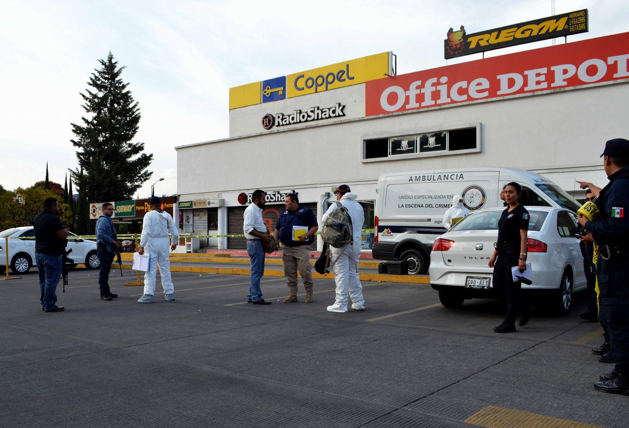Alejandro Serrano/ La Voz de Michoacán Morelia, Michoacán. Una serie de disparos intercambiaron un delincuente y su víctima en el estacionamiento de Plaza Fiesta Camelinas, esto cuando el primero se le acercó al segundo para asaltarlo. El hecho violento se dio esta tarde en el estacionamiento ubicado en la esquina de las Avenida Ventura Puente y Camelinas, a escasos metros de "La Paloma" y del Centro de Convenciones y Exposiciones de Morelia (Ceconexpo). Afortunadamente no hubo lesionados y tampoco muertos. Algunos testigos comentaron a las autoridades que un hombre había salido de una institución bancaria y se dirigía a su vehículo para abordarlo, pero en ese instante un tipo se le aproximó con el objetivo de atracarlo. Consecutivamente el hombre amagó con una pistola al ciudadano, éste último al verse en peligro también sacó un arma de fuego e hizo correr al maleante. En la huida el rufián efectuó detonaciones y el ofendido igualmente disparó, según dijeron personas que presenciaron el suceso. Minutos después arribaron los elementos de la Policía Michoacán, pero ya no estaba ni el delincuente y menos el agraviado, así que el área fue acordonada y fue asegurado un automotor negro, el cual es de la marca Chevrolet Spark.