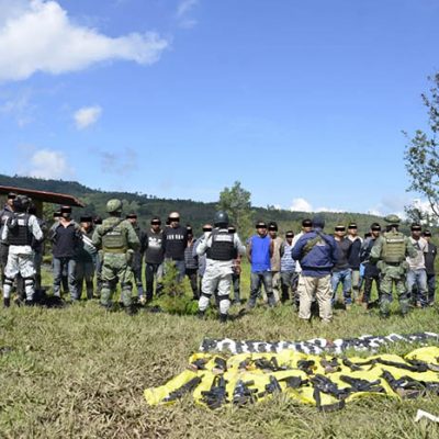 Redacción / La Voz de Michoacán Morelia, Michoacán. Los 37 civiles, entre los cuales hay un menor de edad, capturados por el Ejército Mexicano y Fuerzas Estatales en un narcocampamento de Ciudad Hidalgo, fueron trasladados la tarde de este martes y puestos a disposición de la Fiscalía General de la República con sede en Morelia, donde se habrá de determinar su situación jurídica. Los imputados están relacionados con una célula del Cártel Jalisco Nueva Generación, de los cuales existen indicios de su participación en múltiples delitos y hechos violentos ocurridos en municipios del Oriente michoacano, por lo que ya las instancias competentes laboran en las investigaciones respectivas. Además de una camioneta pick up roja, fue incautado el siguiente armamento: 15 fusiles AR-15.21 rifles de asalto AK-47.Decenas de cargadores.Un arma corta calibre 40 milímetros.Un aditamento lanzagranadas.3 granadas 40 milímetros.Diverso equipo táctico.4 mil 320 cartuchos útiles calibre 7.62x39.2 mil 560 cartuchos para calibre 5.56. Cabe recordar que, a decir de las autoridades, en el operativo no se realizó un solo disparo, ya que los presuntos delincuentes fueron sorprendidos por los soldados, guardias civiles y agentes investigadores cuando descansaban en una finca adaptada como campamento en la localidad de El Caracol, ubicada en la zona serrana del municipio de Hidalgo. Los detenidos responden a los nombres de: J. J. de 14 años.José Pedro R., de 18 años.Luis Ángel G., de 19 años.David Daniel G., de 19 años.Francisco Javier L., de 19 años.Javier H., de 20 años.Eduardo B., de 20 años.Víctor Manuel A., de 20 años.Jesús Eduardo R., de 20 años.César Ariel S., de 20 años.Roberto Joaquín Z., de 21 años.Alexis V., de 21 años.Carlos Daniel V., de 21 años.José Luis G., de 21 años.Leonardo H., de 23 años.Juan Pablo O., de 23 años.Víctor A., de 23 años.José Luis S., de 24 años.Bryan A., de 26 años.Daniel B., de 26 años.Felipe G., de 27 años.Rigoberto V., de 27 años.Héctor Manuel A., de 27 años.Edgar A., de 27 años.Mariano M., de 28 años.Jesús G., de 28 años.Juan Carlos C., de 28 años.Cutberto G., de 28 años.Salvador A., de 31 años.Alejandro E., de 34 años.José F., de 39 años.Ezequiel V., de 44 años.Javier G., de 44 años.Pastor G., de 44 años.Fernando H., de 49 años.José Ángel G., de 52 años.Héctor A., de 66 años.