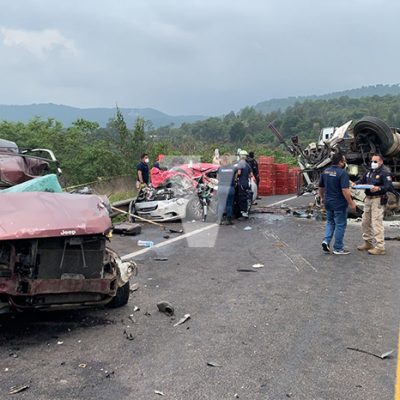 Como se informó previamente en el kilómetro 002+200 del tramo carretero Pátzcuaro-Uruapan en la zona del distribuidor vial de la localidad de Zirimícuaro hubo un choque múltiple en la que se vieron involucrados un camión aguacatero de color blanco; un taxi Chevrolet Aveo; una camioneta Jeep de color rojo y otra camioneta, pero Dakota, de color café.