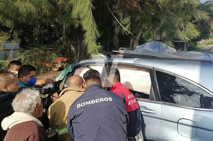 Accidente | Héroes sin capa: mujer con múltiples fracturas es sacada de un auto accidentado por los Bomberos de Zitácuaro Leer más »