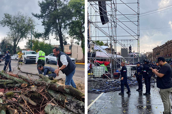 Morelia | Vientos y lluvia derriban panel de pantalla gigante en la Madero y un árbol en la Juárez, de Morelia Leer más »