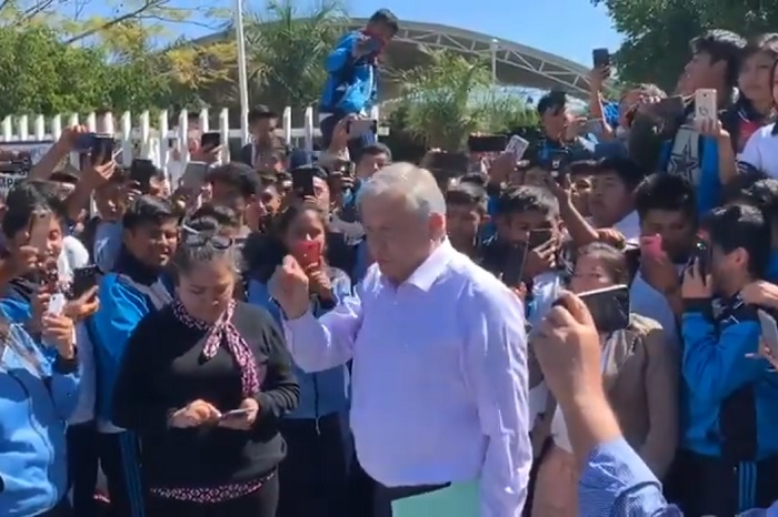 Alumnos de bachillerato detienen a AMLO en el camino