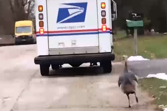 Pavo furioso persigue a un cartero de casa en casa