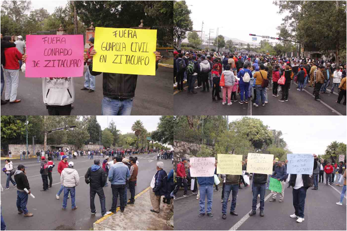 Manifestación | Manifestantes se apersonan en Casa Michoacán; piden salida de la Guardia Civil de Zitácuaro Leer más »