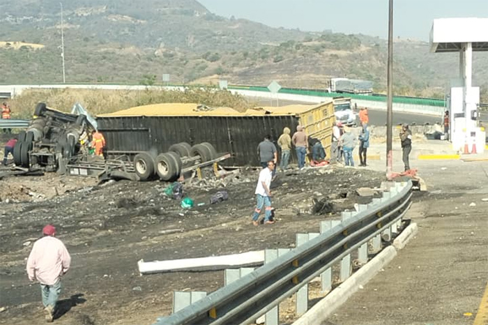 Fallece conductor de tractocamión que volcó cerca de la caseta de Copándaro