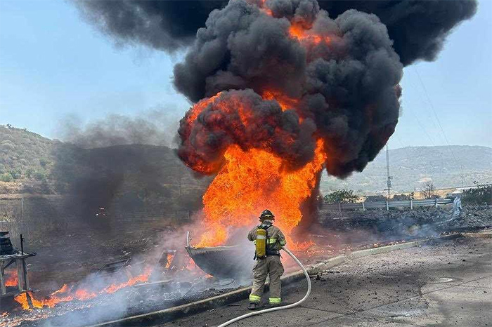 Seguridad | VIDEOS | Arde pipa cargada con turbosina tras volcar cerca de la caseta de Copándaro Leer más »