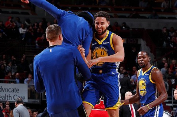 Thompson rompe récords con 14 triples en victoria de Warriors en NBA