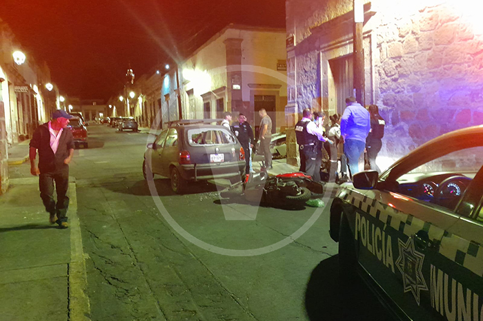 Accidente | Motociclista a exceso de velocidad se estampa contra un Chevy en el Centro de Morelia Leer más »