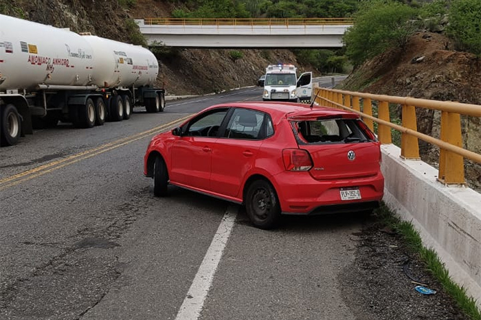 Seguridad | Pareja sufre accidente en la autopista Siglo XXI; viajaban en un Volkswagen Polo color rojo Leer más »