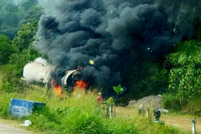 Seguridad | VIDEOS | Arde pipa cargada con turbosina tras volcar cerca de la caseta de Copándaro Leer más »