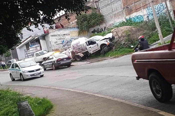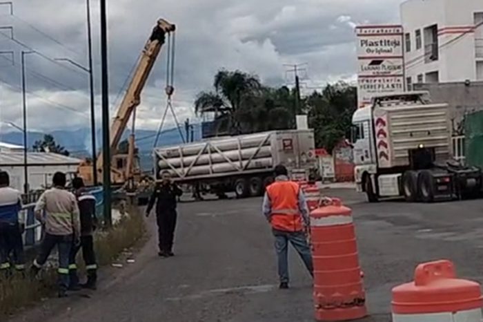 Accidente | Pipa de gas choca contra 3 vehículos, postes y montículo de tierra, en avenida La Joya, en Morelia Leer más »