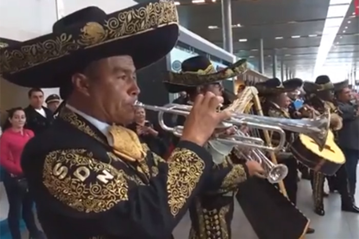 Mariachi sorprende en el aeropuerto de Colombia
