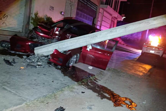 Accidente | Conductor destroza su carro contra un poste de la CFE y sobrevive de milagro, en Zitácuaro Leer más »