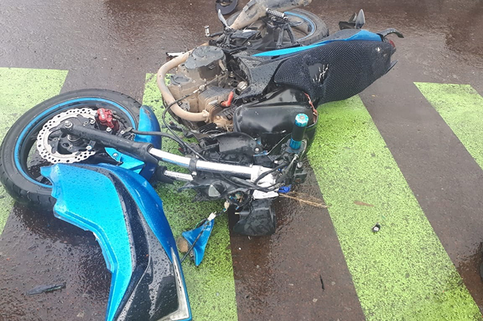 Intenta esquivar un bache y atropella a un motociclista