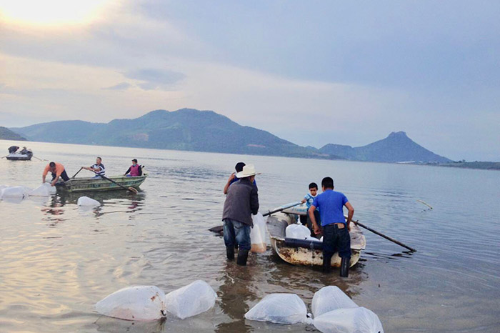 Siembran más de 40 mil crías de tilapia en la presa de El Bosque